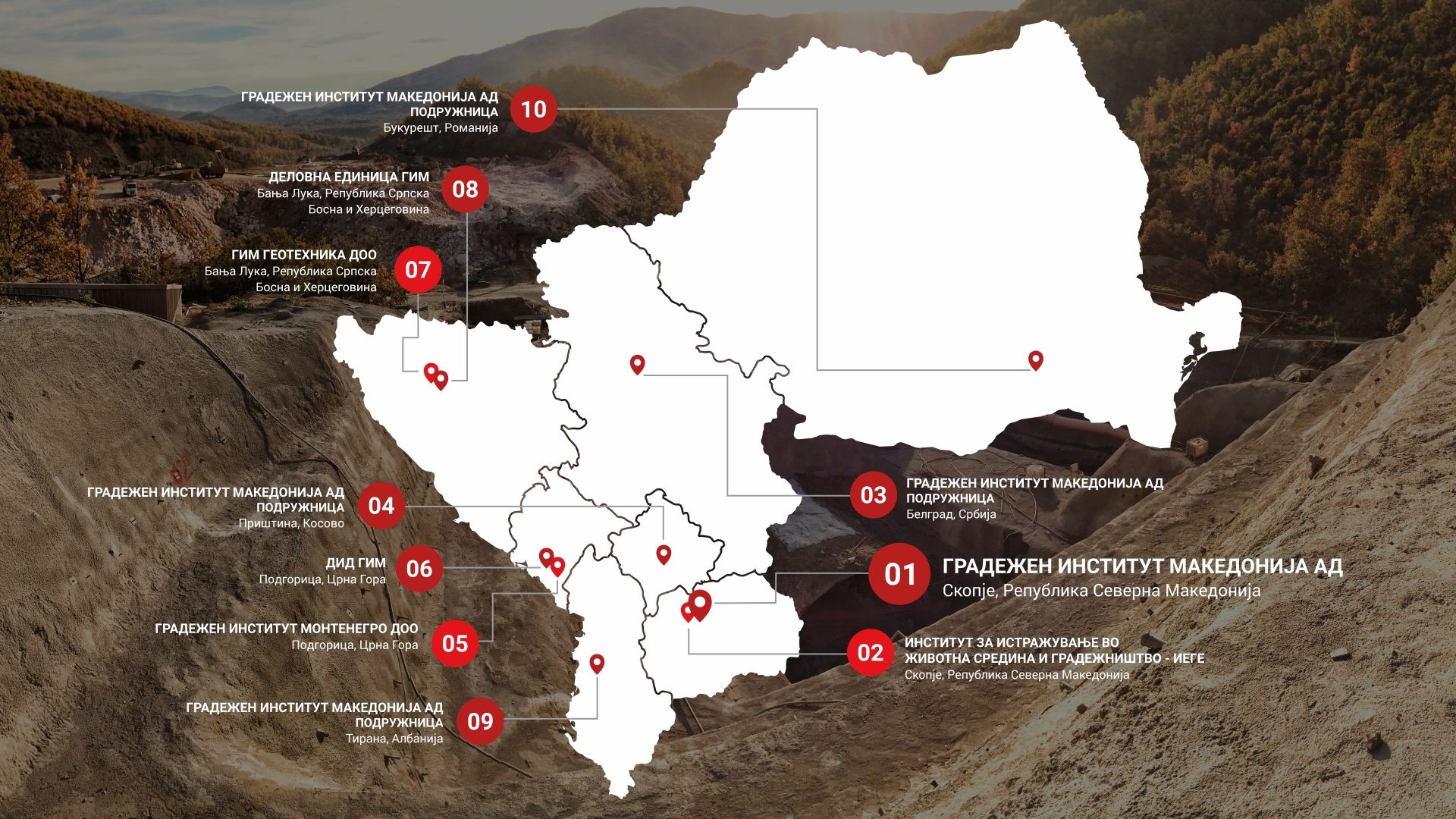 Градежен институт МАКЕДОНИЈА е приватна компанија основана во 1975 година, која со традиција од 45 години успешно ја гради својата визија - да се биде водечка компанија